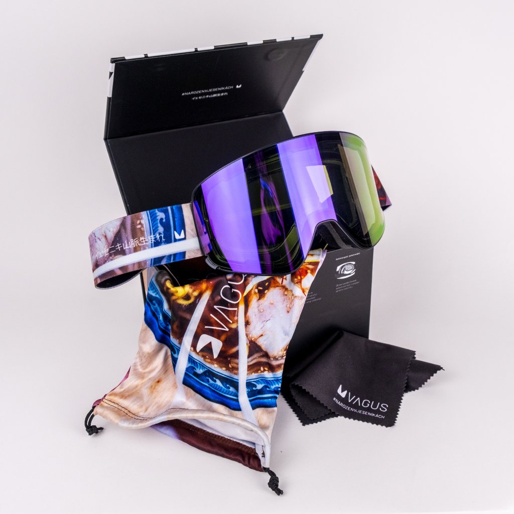 - Obsah balení - brýle s hlavní zorníkem, magnetický box, ochranný pytlík a čistící hadřík
